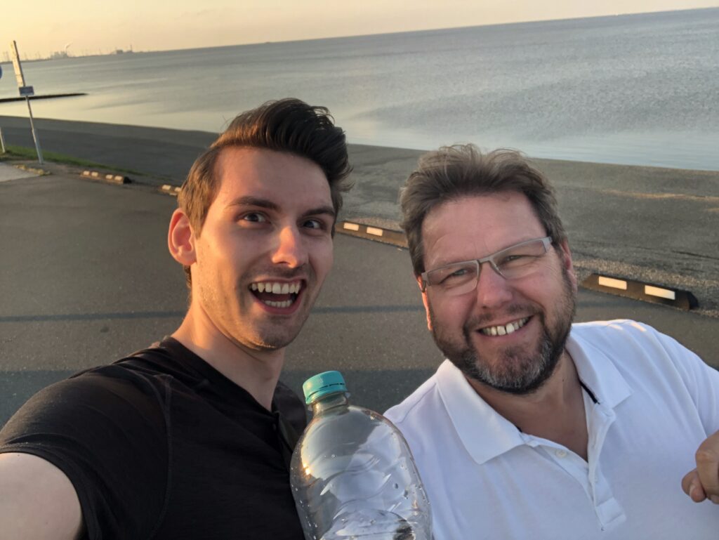 Patrick (left), founder and owner of Brixxyshop with his father Michael.