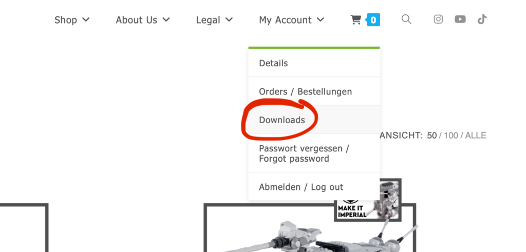 You made an account on our site? Then you are in luck! Just navigate to „My Account“ and then „Downloads“ to find all your unlocked instruction files: